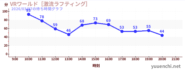 2026/03/07の待ち時間グラフ (VRワールド[激流ラフティング])