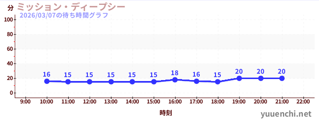 2026/03/07の待ち時間グラフ (ミッション・ディープシー)