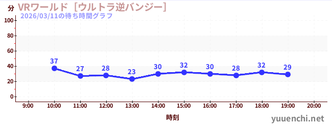 2026/03/11の待ち時間グラフ (VRワールド[ウルトラ逆バンジー])
