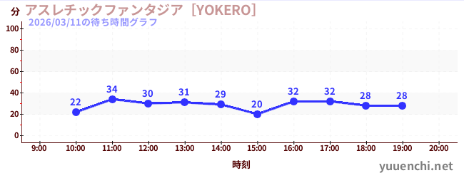 2026/03/11の待ち時間グラフ (アスレチックファンタジア[YOKERO])