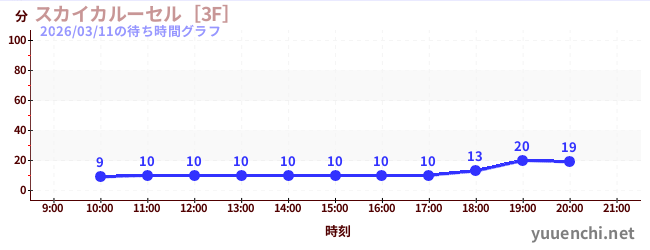 2026/03/11の待ち時間グラフ (スカイカルーセル[2F])