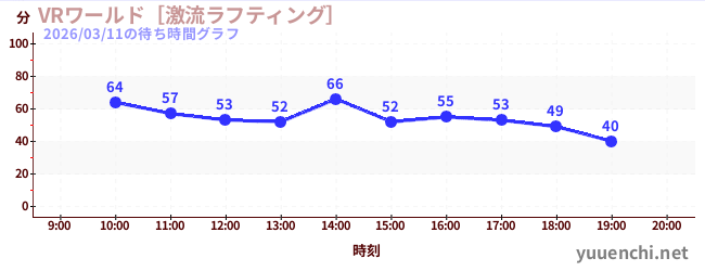 2026/03/11の待ち時間グラフ (VRワールド[激流ラフティング])