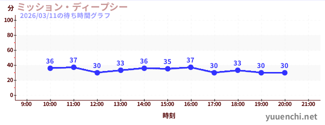 2026/03/11の待ち時間グラフ (ミッション・ディープシー)