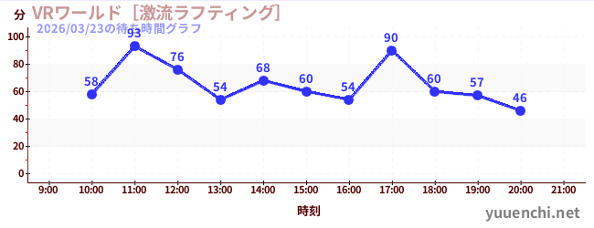 2026/03/23の待ち時間グラフ (VRワールド[激流ラフティング])