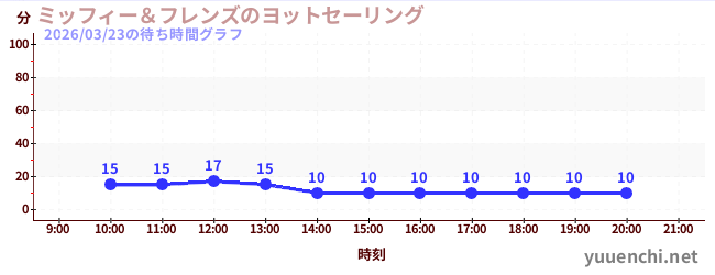 2026/03/23の待ち時間グラフ (ミッフィー&フレンズのヨットセーリング)