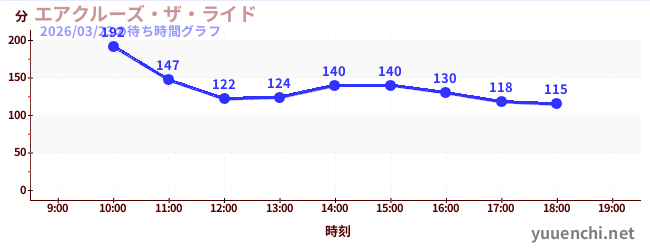 2026/03/23の待ち時間グラフ (エアクルーズ・ザ・ライド)