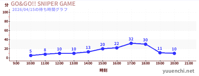 2026/04/15の待ち時間グラフ (GO&GO!! SNIPER GAME)