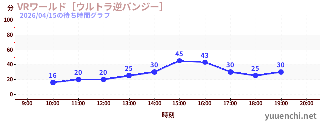2026/04/15の待ち時間グラフ (VRワールド[ウルトラ逆バンジー])