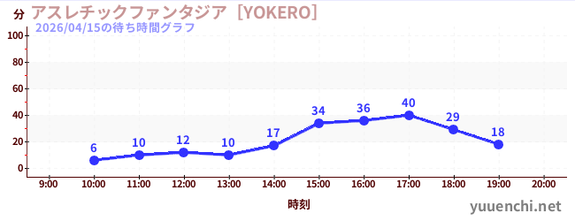 2026/04/15の待ち時間グラフ (アスレチックファンタジア[YOKERO])