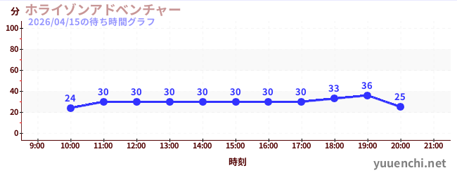 2026/04/15の待ち時間グラフ (ホライゾンアドベンチャー)