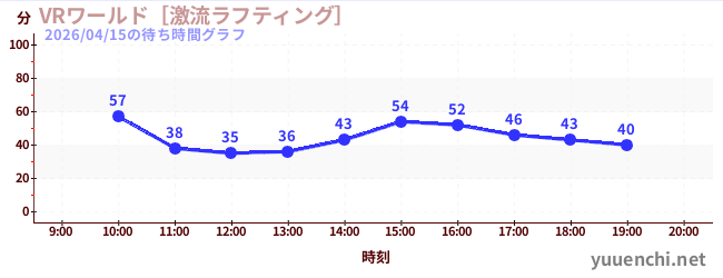 2026/04/15の待ち時間グラフ (VRワールド[激流ラフティング])