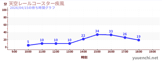 2026/04/15の待ち時間グラフ (天空レールコースター疾風)