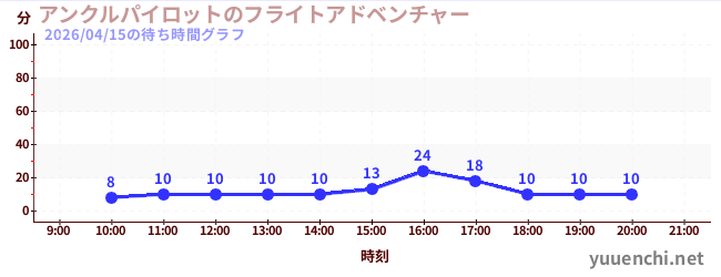 2026/04/15の待ち時間グラフ (アンクルパイロットのフライトアドベンチャー)