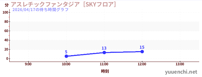 2026/04/17の待ち時間グラフ (アスレチックファンタジア[SKYフロア])