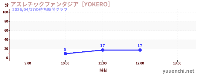 2026/04/17の待ち時間グラフ (アスレチックファンタジア[YOKERO])