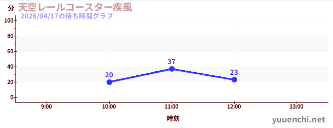 2026/04/17の待ち時間グラフ (天空レールコースター疾風)