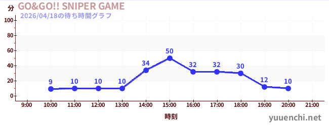 2026/04/18の待ち時間グラフ (GO&GO!! SNIPER GAME)
