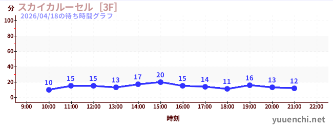 2026/04/18の待ち時間グラフ (スカイカルーセル[3F])