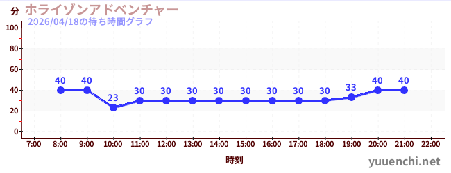 2026/04/18の待ち時間グラフ (ホライゾンアドベンチャー)