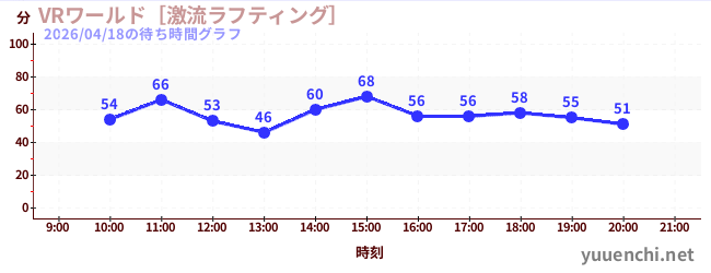 2026/04/18の待ち時間グラフ (VRワールド[激流ラフティング])