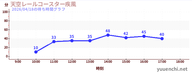 2026/04/18の待ち時間グラフ (天空レールコースター疾風)
