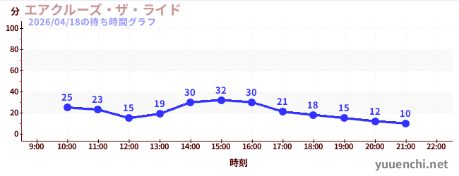 2026/04/18の待ち時間グラフ (エアクルーズ・ザ・ライド)