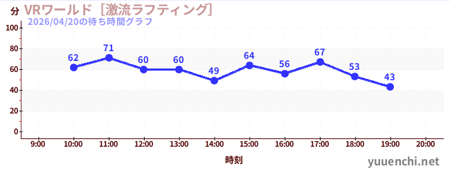 2026/04/20の待ち時間グラフ (VRワールド[激流ラフティング])