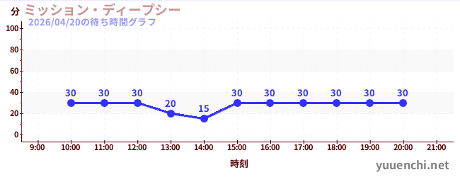 2026/04/20の待ち時間グラフ (ミッション・ディープシー)
