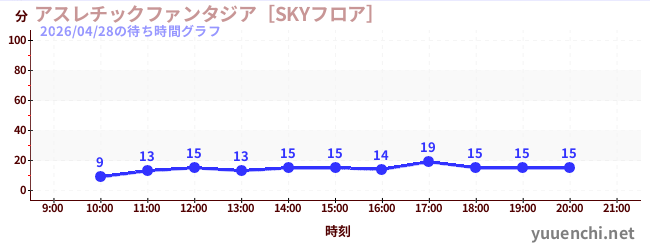 2026/04/28の待ち時間グラフ (アスレチックファンタジア[SKYフロア])