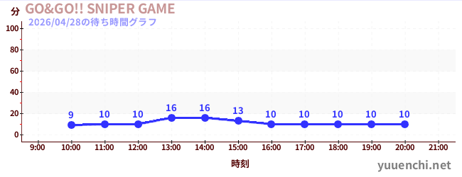 2026/04/28の待ち時間グラフ (GO&GO!! SNIPER GAME)