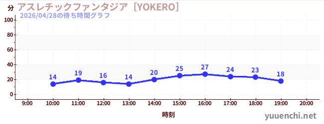 2026/04/28の待ち時間グラフ (アスレチックファンタジア[YOKERO])