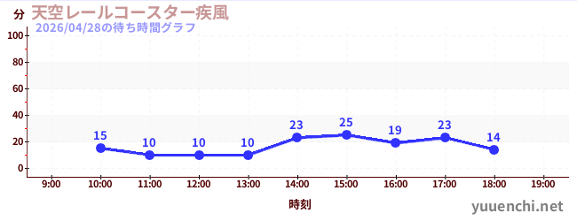 2026/04/28の待ち時間グラフ (天空レールコースター疾風)