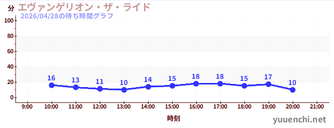 2026/04/28の待ち時間グラフ (エヴァンゲリオン・ザ・ライド)