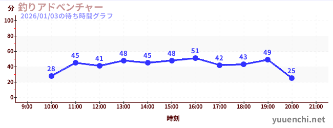 2026/01/03の待ち時間グラフ (釣りアドべンチャー)