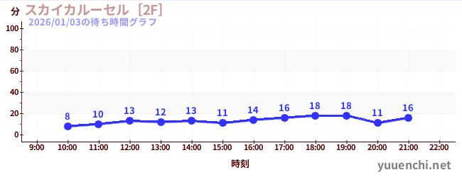 2026/01/03の待ち時間グラフ (スカイカルーセル[2F])