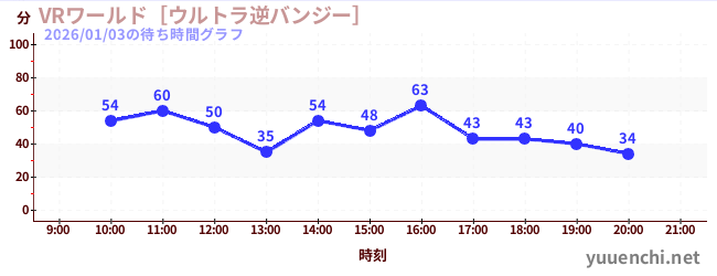 2026/01/03の待ち時間グラフ (VRワールド[ウルトラ逆バンジー])