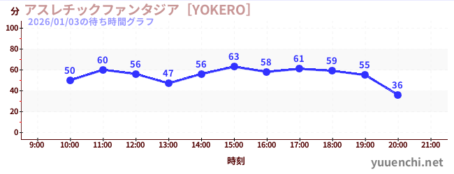 2026/01/03の待ち時間グラフ (アスレチックファンタジア[YOKERO])