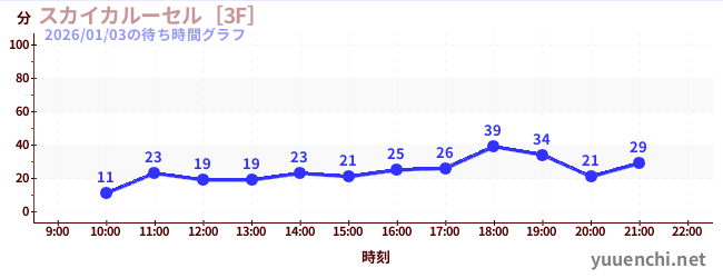 2026/01/03の待ち時間グラフ (スカイカルーセル[3F])