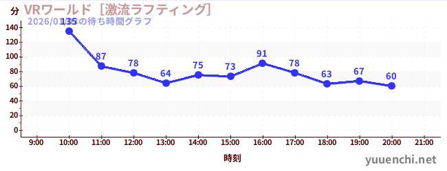 2026/01/03の待ち時間グラフ (VRワールド[激流ラフティング])