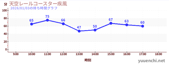 2026/01/03の待ち時間グラフ (天空レールコースター疾風)