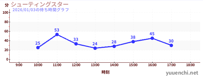 2026/01/03の待ち時間グラフ (シューティングスター)