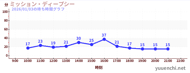 2026/01/03の待ち時間グラフ (ミッション・ディープシー)