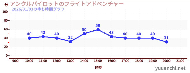 2026/01/03の待ち時間グラフ (アンクルパイロットのフライトアドベンチャー)