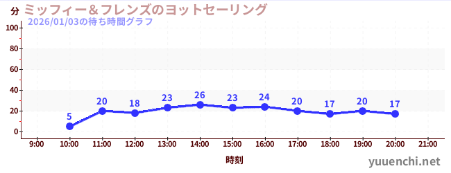 2026/01/03の待ち時間グラフ (ミッフィー&フレンズのヨットセーリング)