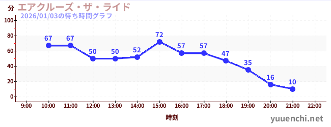 2026/01/03の待ち時間グラフ (エアクルーズ・ザ・ライド)