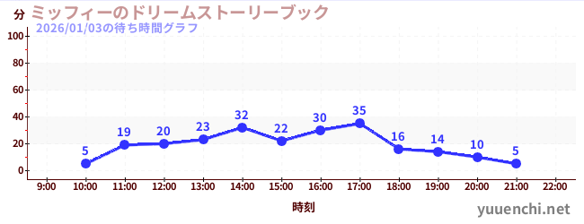 2026/01/03の待ち時間グラフ (ミッフィーのドリームストーリーブック)