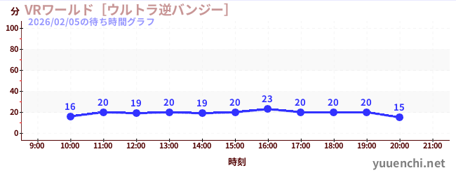 2026/02/05の待ち時間グラフ (VRワールド[ウルトラ逆バンジー])