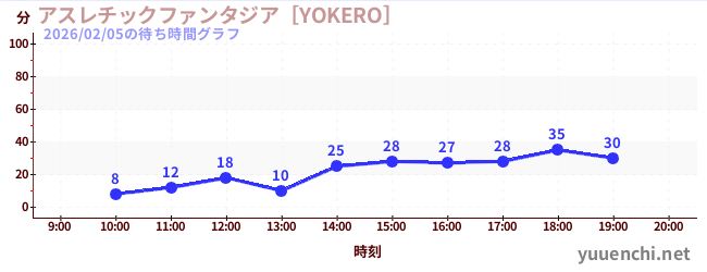 2026/02/05の待ち時間グラフ (アスレチックファンタジア[YOKERO])