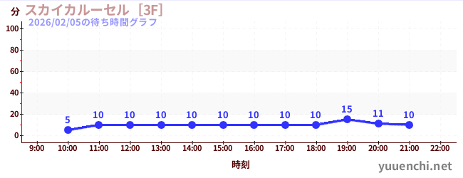 2026/02/05の待ち時間グラフ (スカイカルーセル[3F])