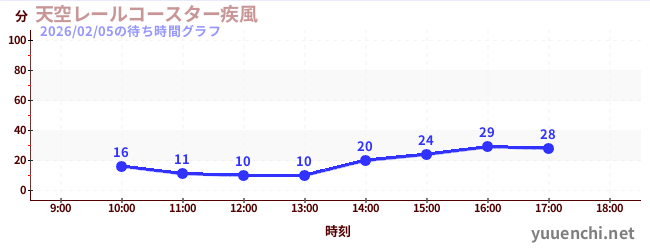2026/02/05の待ち時間グラフ (天空レールコースター疾風)